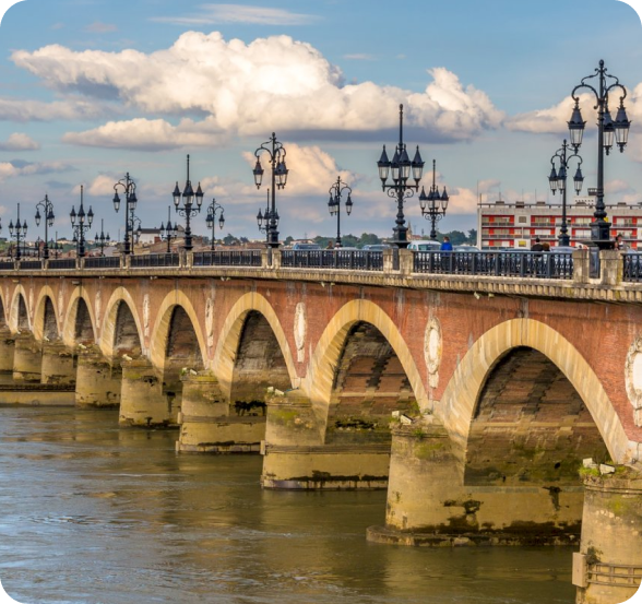 - Continue to Bordeaux, evening walk along the Garonne riverfront.