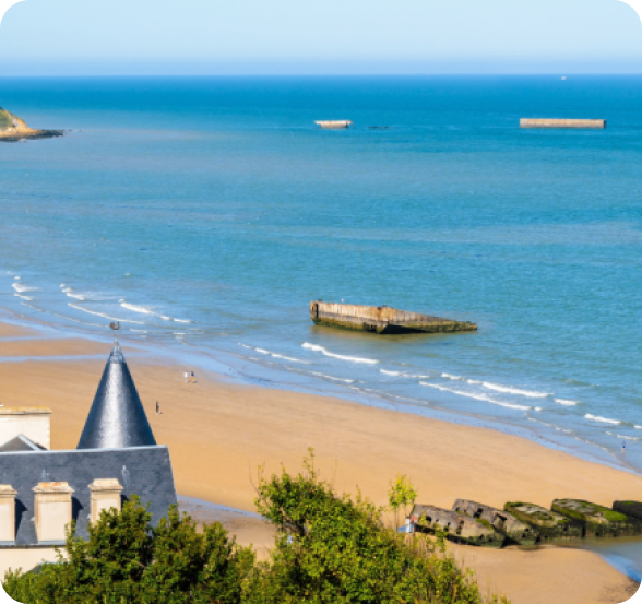 - D-Day sites – Omaha Beach, American Cemetery and reflective coastal landscapes.