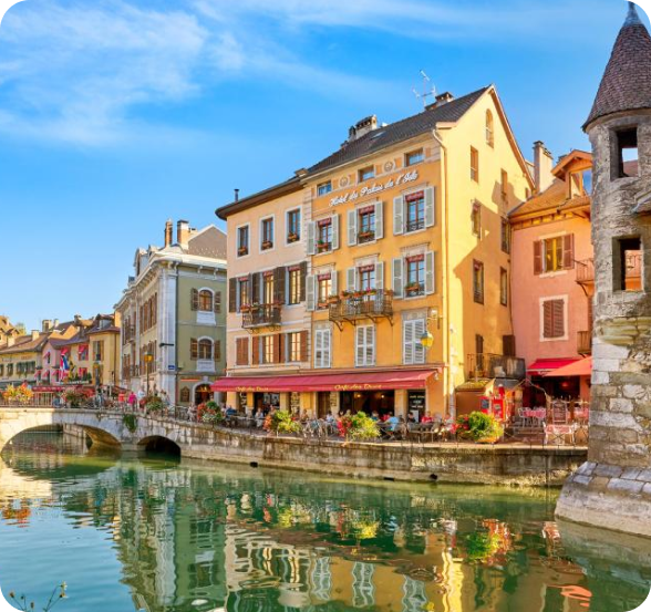 - Annecy Old Town – canals, pastel houses, lakeside promenades.