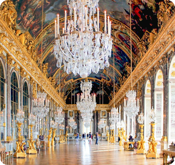 - Short transfer to Versailles Palace. Visit the Hall of Mirrors, royal apartments, and expansive gardens. Afternoon at Grand & Petit Trianon. Overnight near Versailles for relaxed pacing.