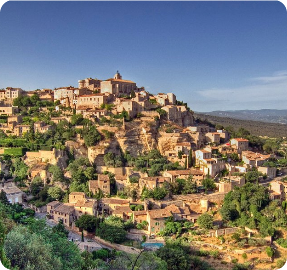 - Luberon countryside – Gordes, Roussillon, ochre cliffs, olive groves and hilltop panoramas.