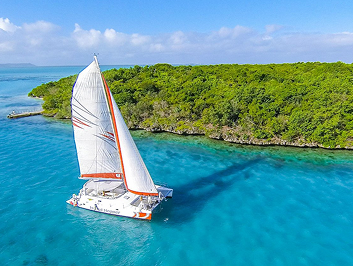Sail the lagoons on a catamaran cruise.